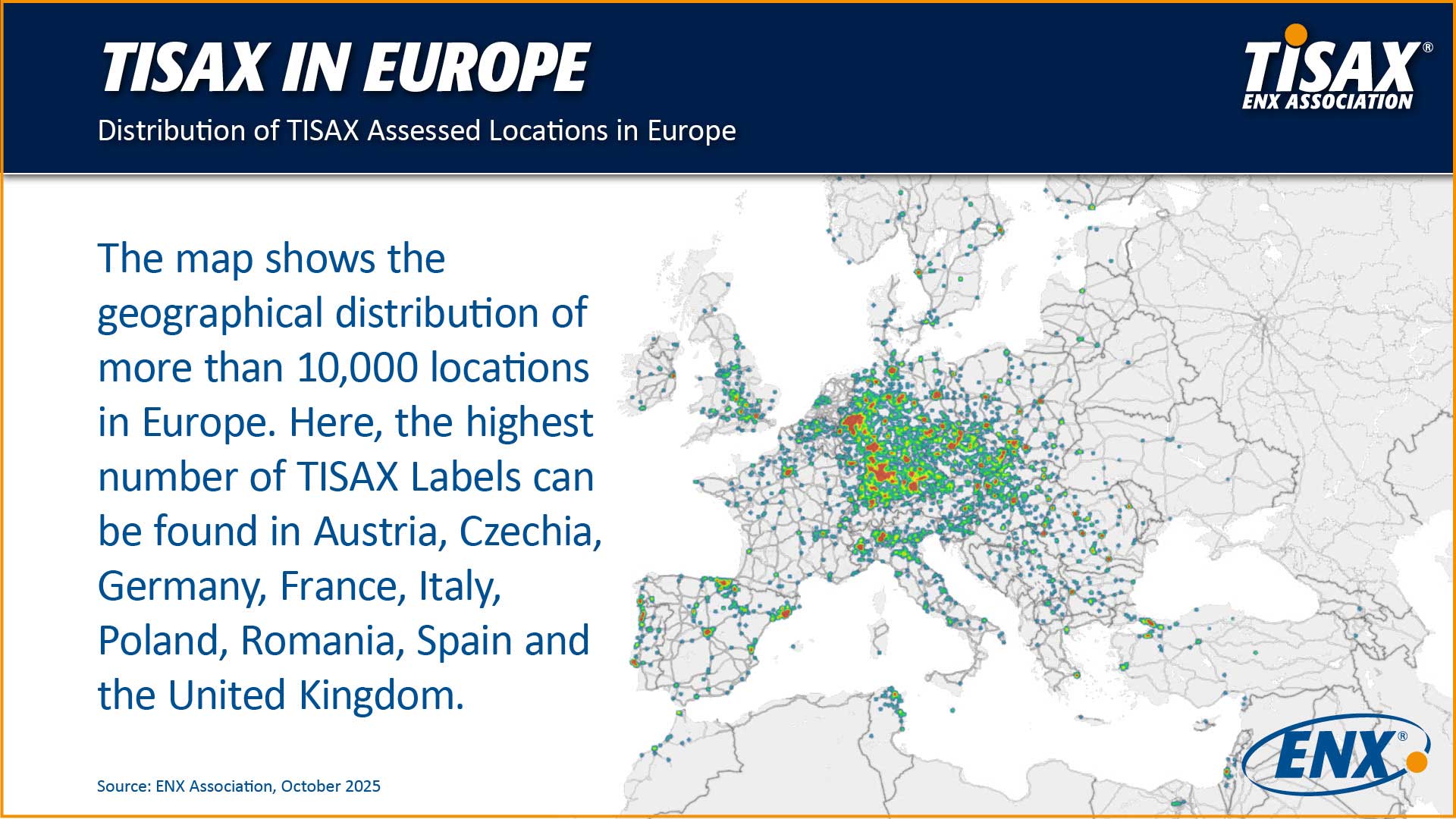 TISAX continues to demonstrate a strong and growing global footprint. Recent analyses published via our LinkedIn channel, including regional heatmaps and country rankings, illustrate how TISAX‑assessed locations are distributed across key automotive and industrial regions worldwide.
